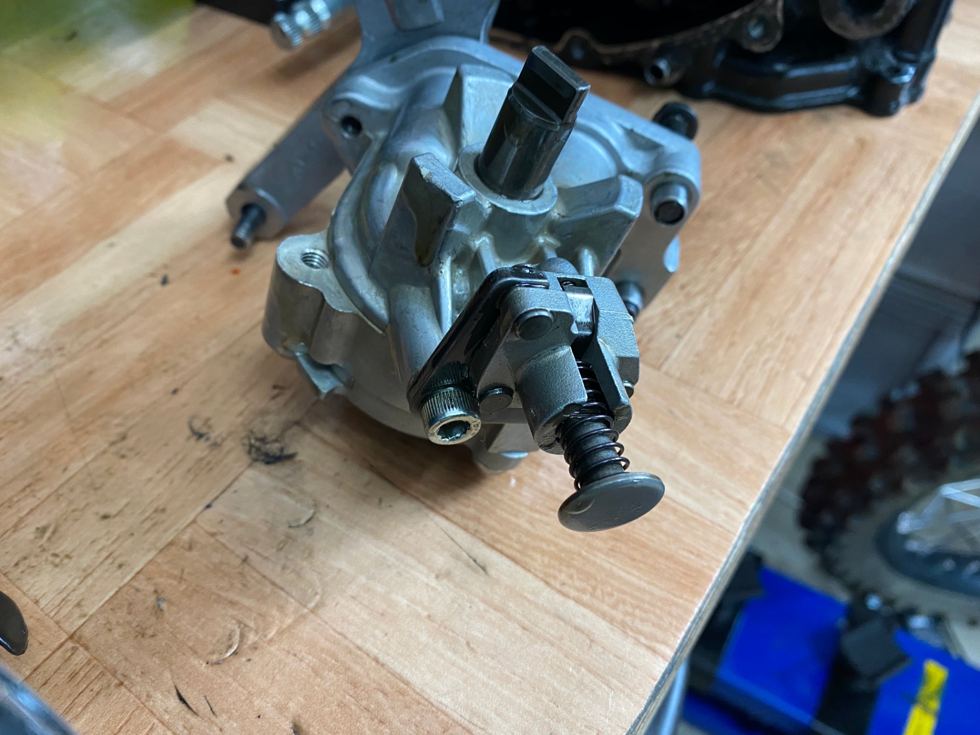 Der Spanner sitzt unten an der Ölpumpe