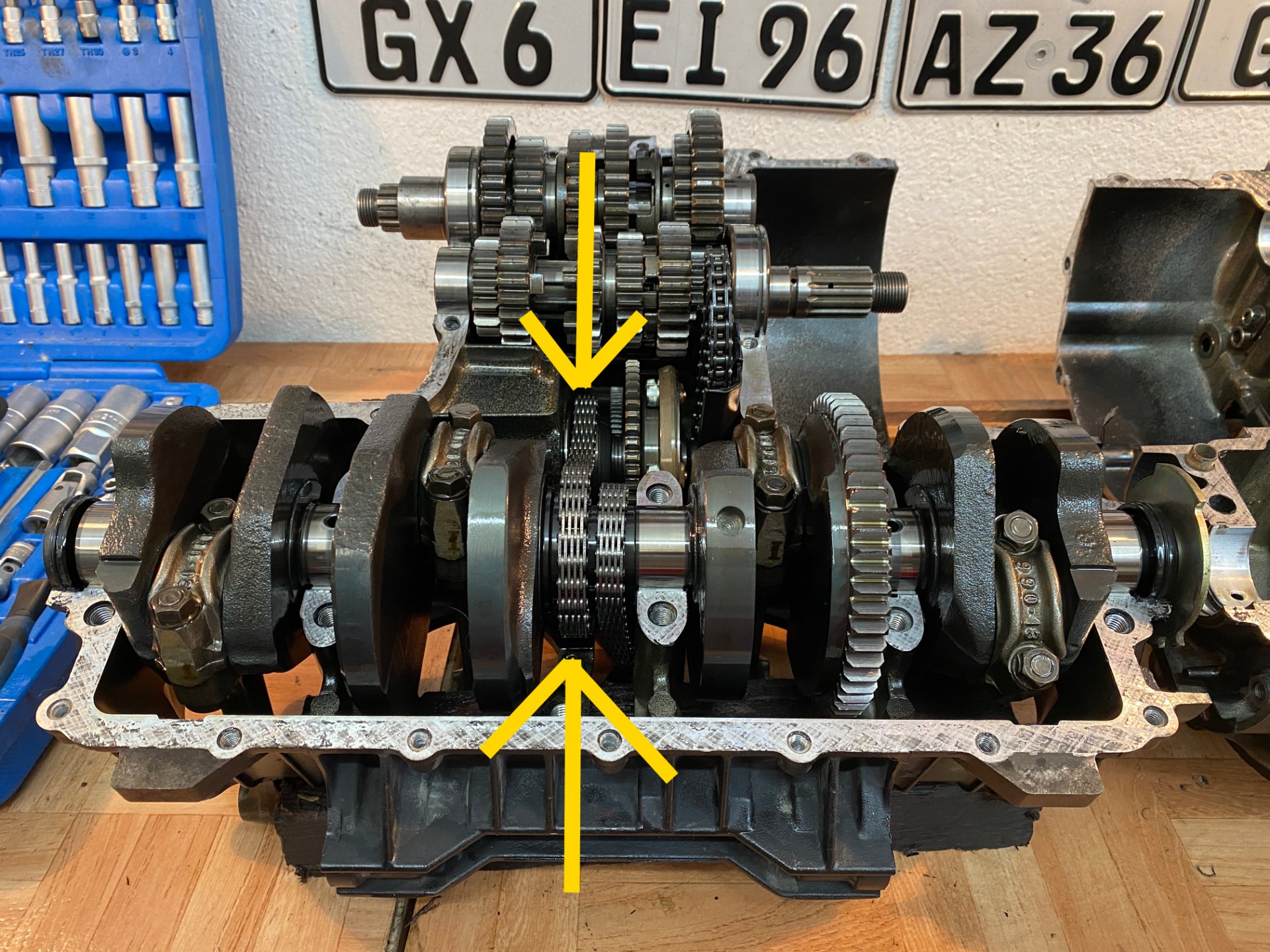 Schaltklauen sind getauscht und Motor ist wieder drin.