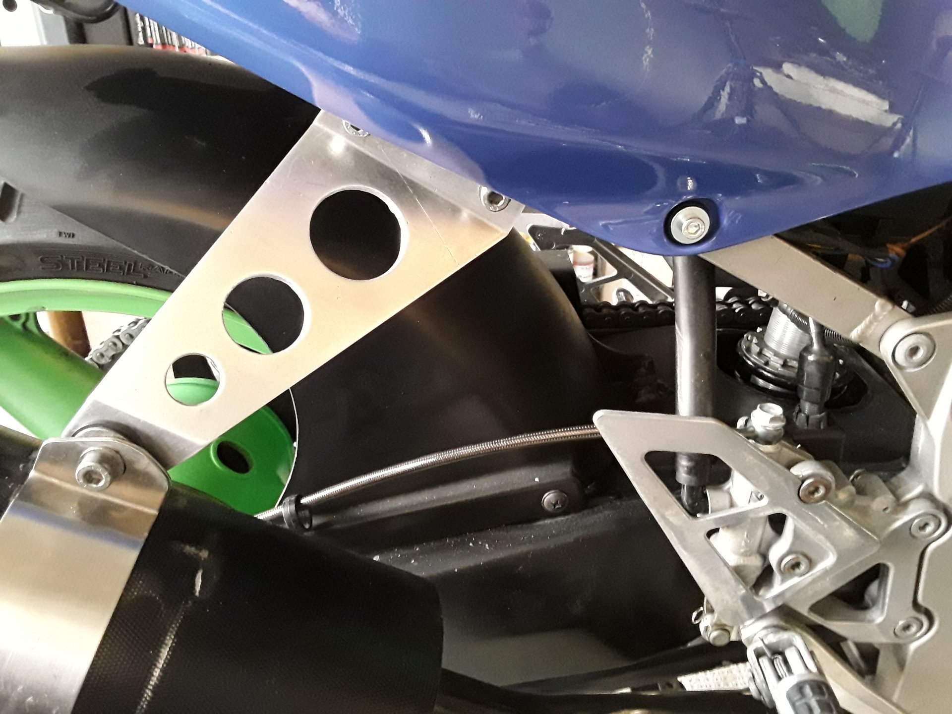 Die Schrauben sind einfach noch drin um die Gewinde zu verschließen und die Schrauben nicht zu verlieren. Ist ja zurückbaubar. Links ist da jetzt ein kleiner Alubügel fest geschraubt, in dem die Kabel liegen.