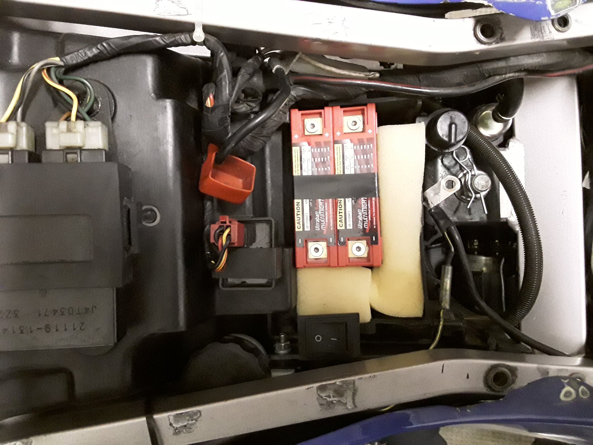 Größe und Gewicht 2 Batterien mit je 4 Zellen parallel geschaltet. Motorrad startet auch mit einer normalerweise problemlos. Habe damit schon öfter das Auto gestartet. Ist auch nach längerem Starten schnell wieder auf Nennspannung geladen , etwa 13,4V. Wär dadurch auch gut für Kurzstrecken. Bis jetzt seit 1500km keine Probleme.