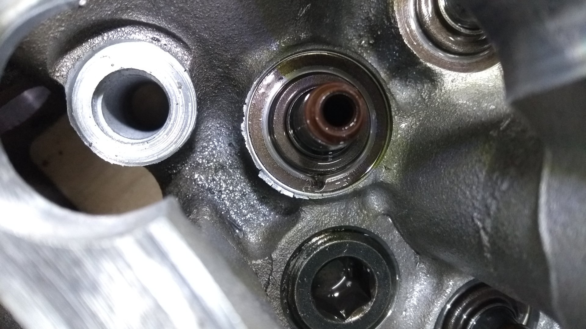Wow :oo: Was ich ein meinem Zylinderkopf gefunden habe war auch nicht ohne. Um die Ventilteller war teils nur ein hauchduenner Rand nach dem Werksseitigen bearbeiten uebrig geblieben, welcher sich durch die Ventilfdern schon teils aufgeloest hat. Auch rund um den "Naht" im Kopf waren viele sehr lockere Grate. Eines der Bilder zeigt den Steuerkettenschacht der auch angekratzt ist.