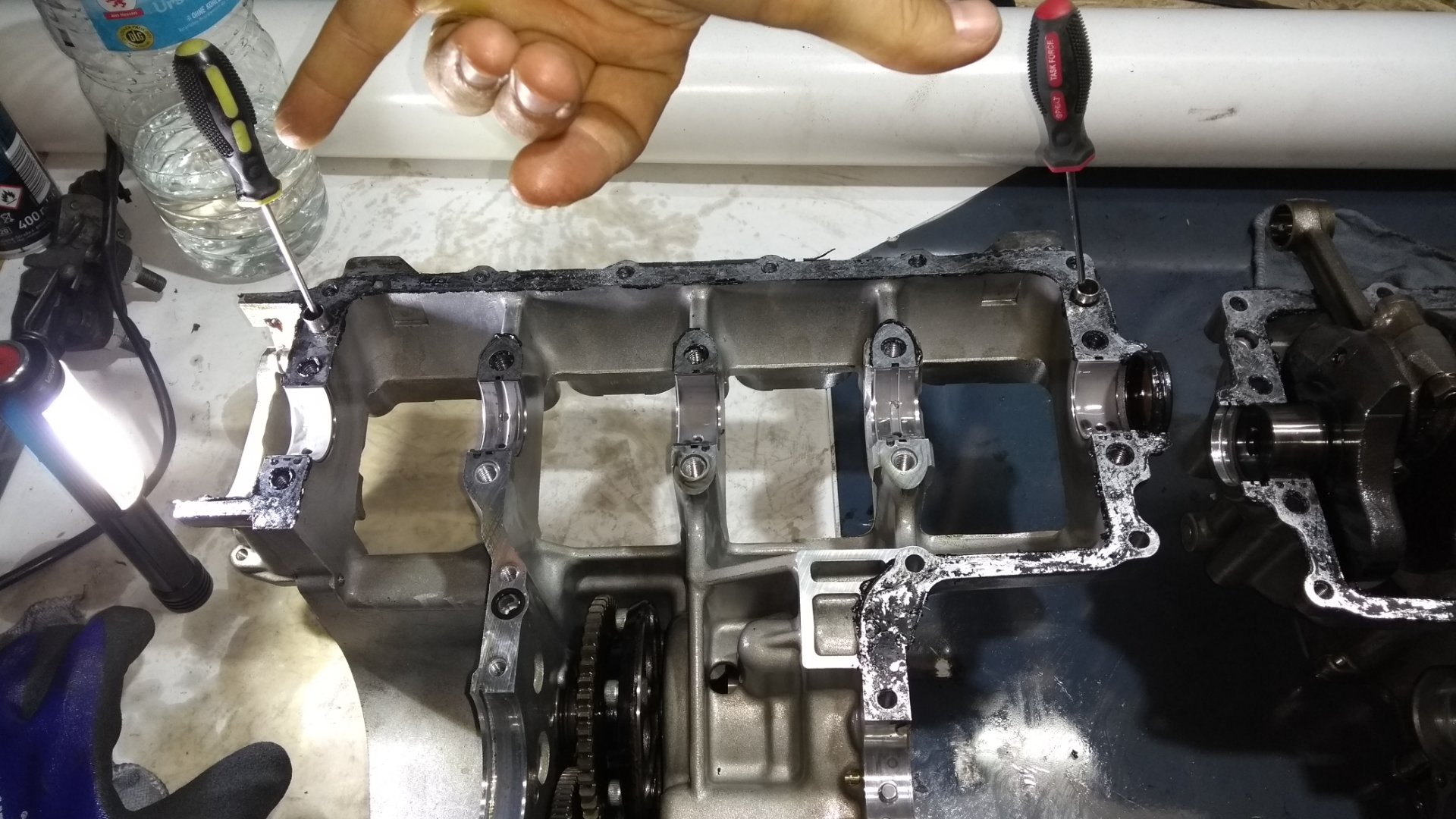 Die Aluspaene kamen wohl vom Zylinderkopf wo unglaublich viele Gussgrate teils dicker, teils hauchduenn (siehe Bilder) sich geloest haben koennten, und somit im Oelkreislauf gelandet sind.