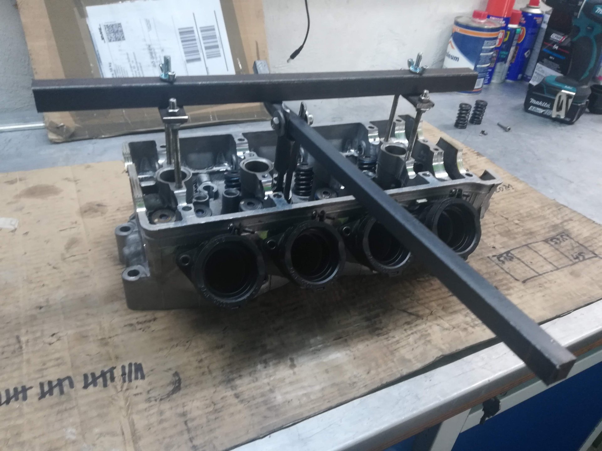 Ich behaupte sogar, dass man mit meiner selbst gebauten Brücke zum Ventile ausbauen auch ohne Kopfdemontage die Dichtungen wechseln kann.