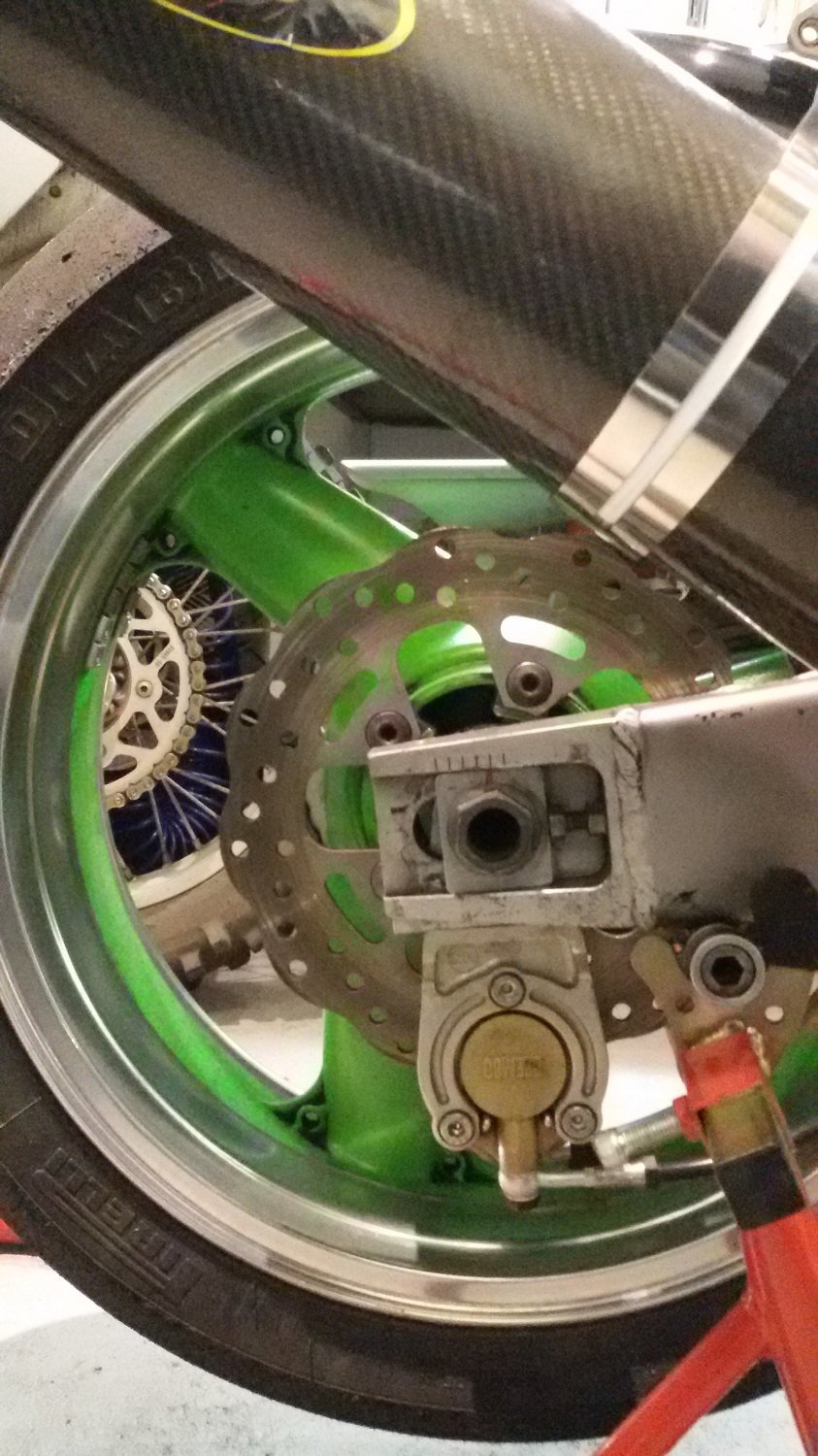 Hinten gab es eine neue Bremsscheibe die hoffentlich nicht mehr zur Salatschüssel wird.