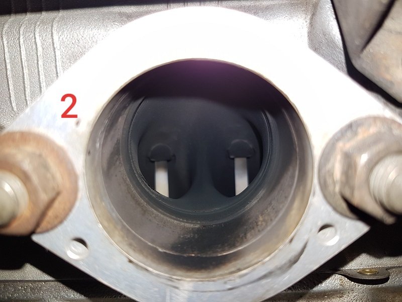Eventuell bestand die Undichtigkeit schon seit Einbau des 9ér Motors. Das würde zumindest die dunkle Färbung im Krümmer dieses Zylinders erklären.