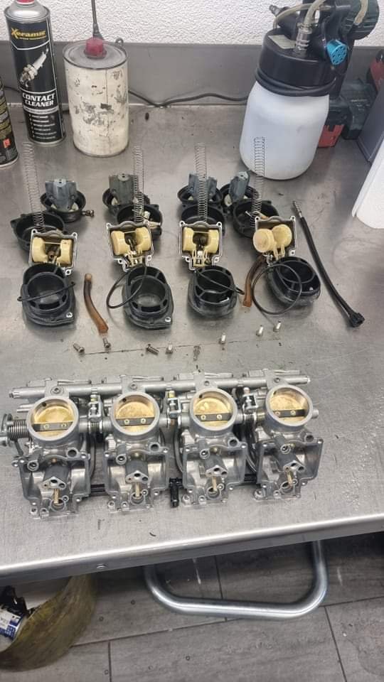 Alle Flüssigkeiten gewechselt, Kerzen, Vergaser komplett revidiert mit jeglicher erdenklichen Dichtung die es gibt, Benzinschläuche ersetzt, Benzinhahn revidiert, Tank entrostet und neu Beschichtet, Kettenkit und joa. Mal soweit das ich fahren konnte und Gewissheit habe das alles tut was es soll.