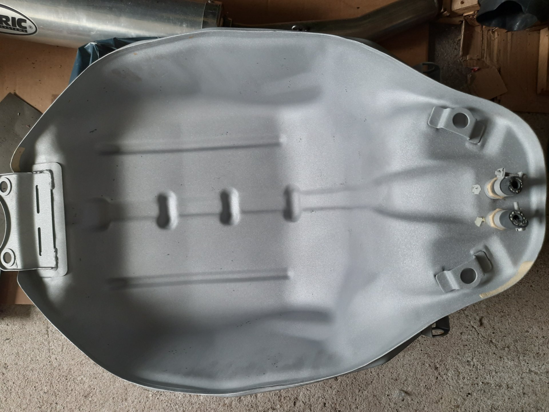 Der Tank geht nun zum Entlacken und Entrosten von außen. Die Verkleidungsteile werden nun fürs Lackieren vorbereitet.