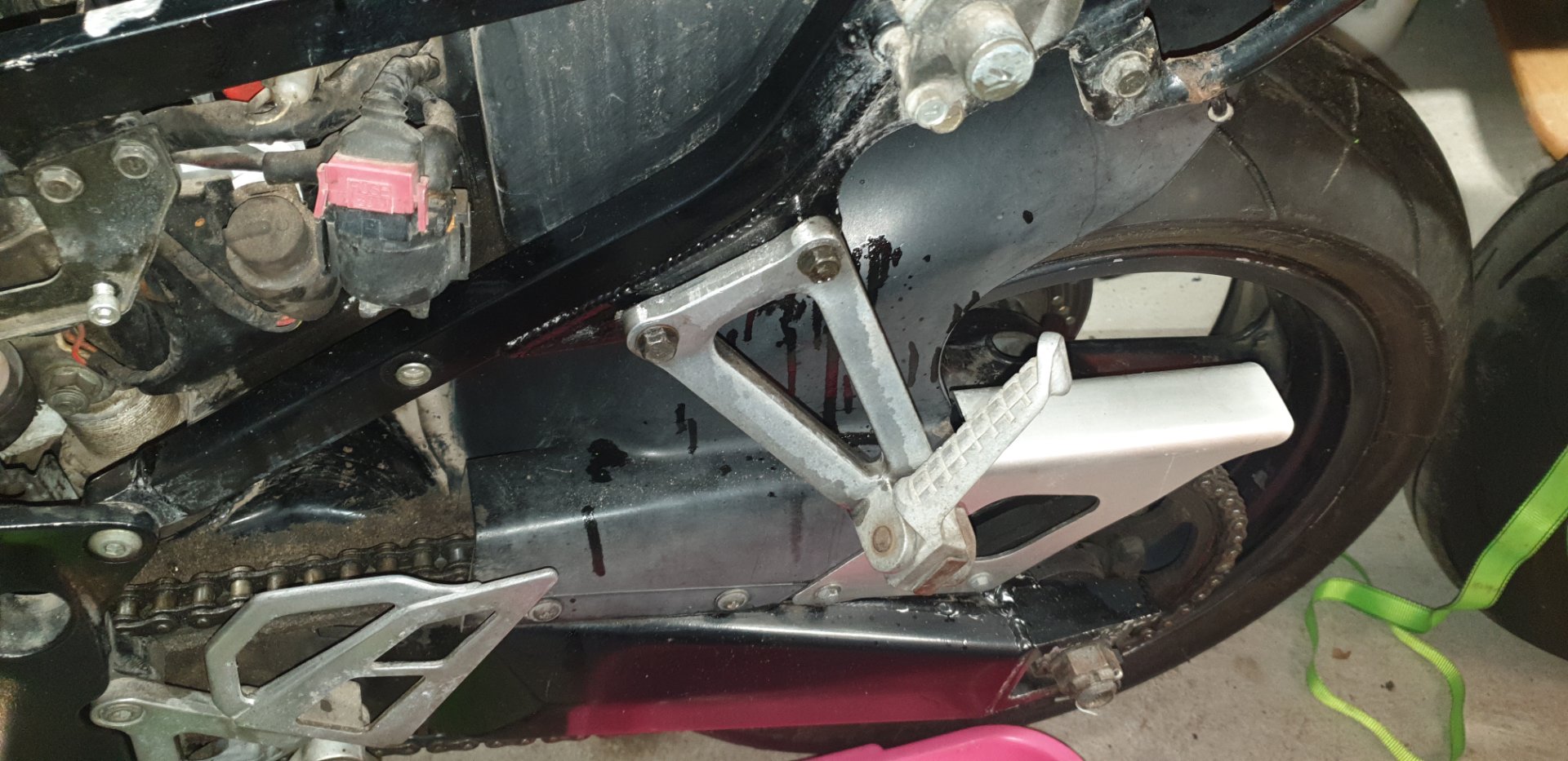 Also meine Vermutung ist, das die Karre mal auf die Seite gelegt wurde und dabei der Einfüllstopfen undicht oder abgerissen ist ....nur ne Vermutung.