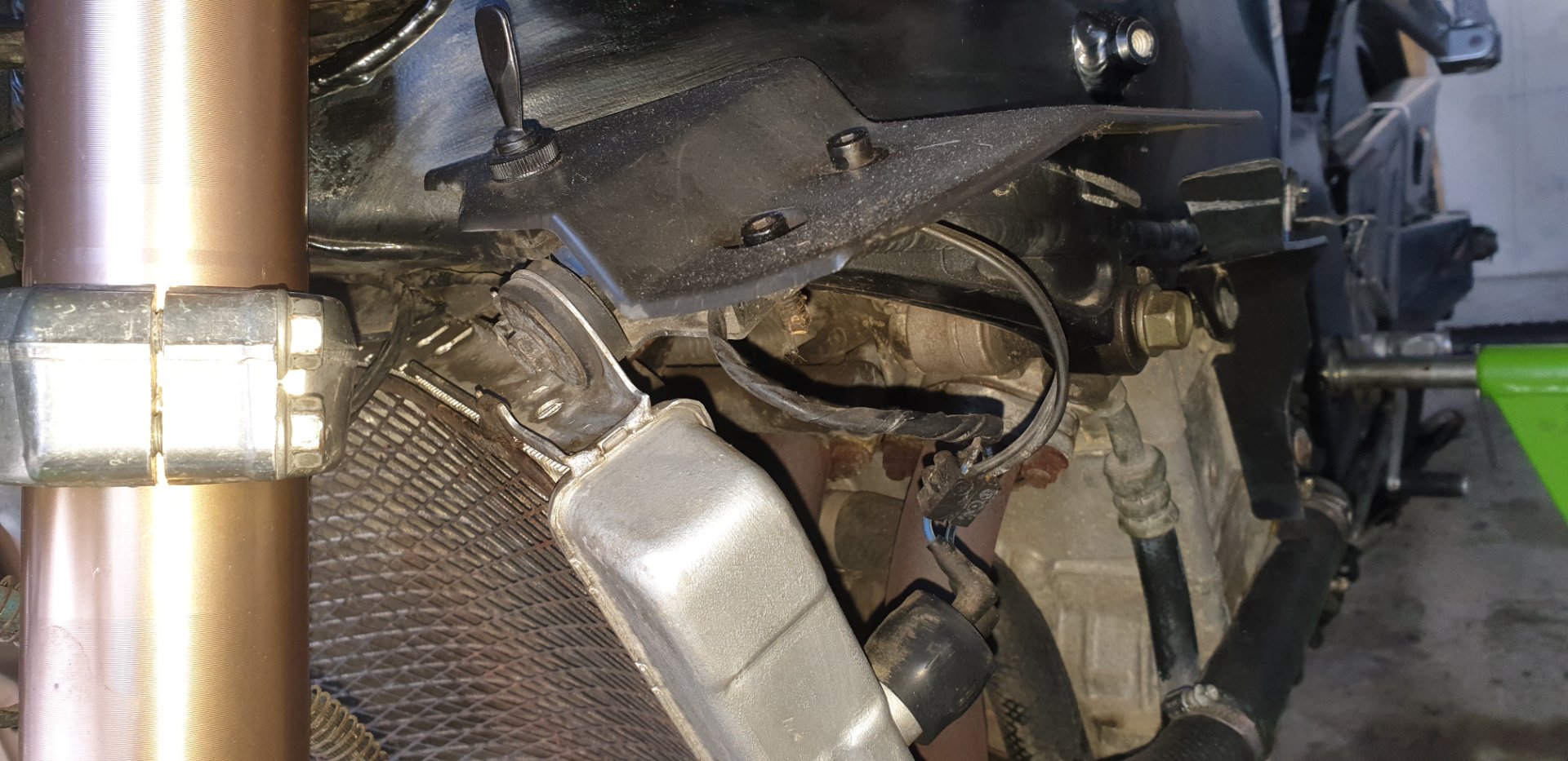 der Vorbesitzer hat den Schlauch vom Ausgleichsbehälter einfach mit einer Schraube zugemacht. Ihm fehlte wohl der Anschluß beim Auffüllstutzen.
