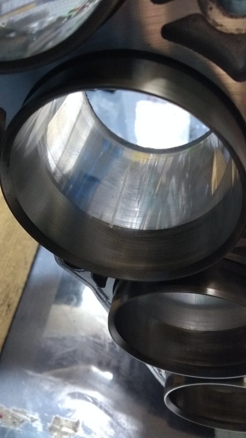 habe heute den Zylinder und die Kolben ausgebaut. Die Kolben sehen alle 4 wirklich super aus. Auch die Laufbahnen sind in super Zustand. Eine hatte mal irgendetwas vernascht , aber ich glaube das ist ok. (Man fuehlt es kaum mit dem Fingernagel) Aufgefallen ist mir auch das Pleuel nr 1 und der entsprechende Kolbenbolzen leichte Reibespuren haben. Ich hoffe mal ein neuer Bolzen genuegt hier. Weiss nicht ob ein neues Pleuel unbedingt noetig ist.Ich hoffe jedefalls nicht. Im Anhang sind die Bilder. Freue mich wie immer ueber eure Erfahrungen und Tips.