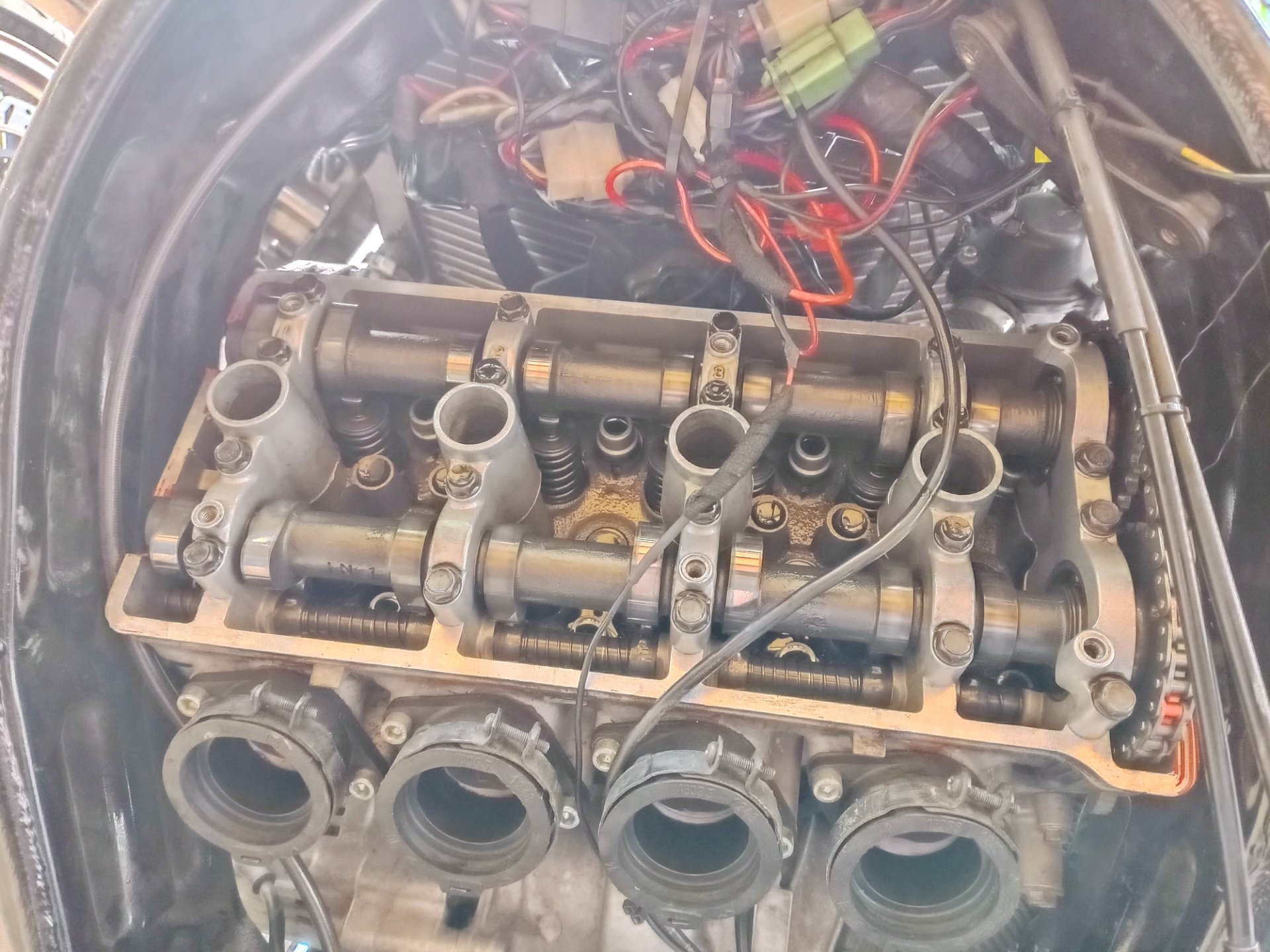 Anschließend sind, wie beim Einstellen des Ventilspiels, die Nockenwellen, Kipphebel, Steuerkette usw. sichtbar: